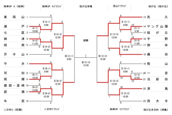 庭瀬シャークスの連覇が続くのか…決勝戦も楽しみです☺