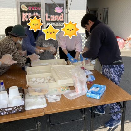 ご来場いただいた方と一緒に冷めないうちに急いで丸めました。