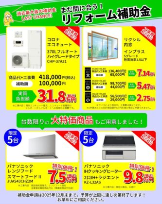 住宅省エネ2025キャンペーンの申請期限も迫ってきています。