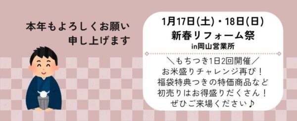 1月17日(土)・18日(日) 新春リフォーム祭を岡山営業所にて開催します!